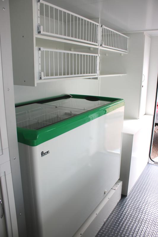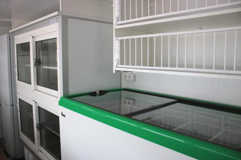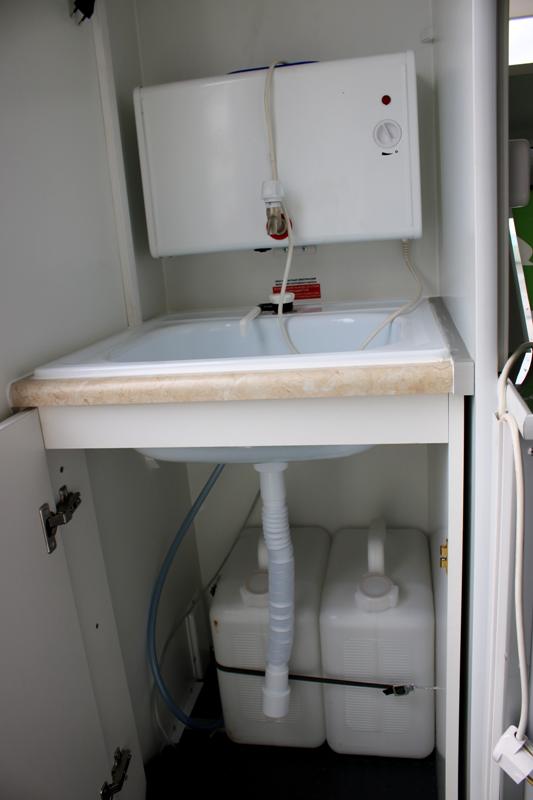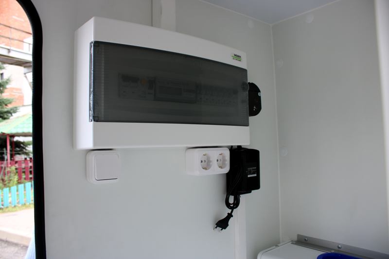 - одна разрезная ставня, освещение 220В, остекление, блок розеток 220В, бортовой ввод, освещение, щиток + электросчетчик, гардеробный шкаф, автономное водоснабжение (тумба, мойка эмалированная, две канистры, контактный кран Comet, насос погружной Comet), бойлер,.