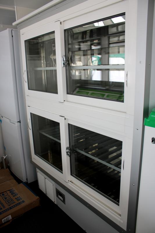 - Холодильный шкаф 800 (800л, t 0…+7 oC, дл. 1,33м, четыре вертикальные двери купе, подсветка, пассивная оттайка, четыре решетчатые полки из алюминевых профилей);