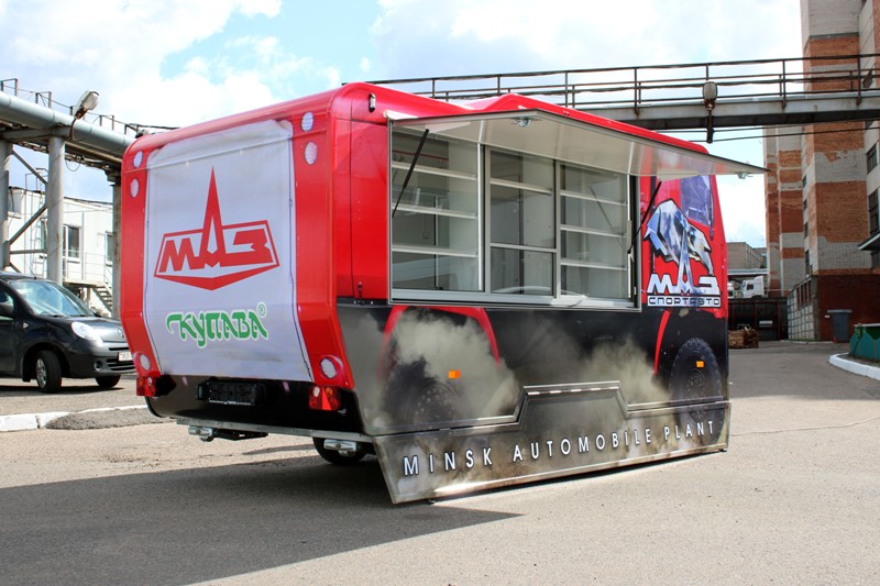 Комплектация: торговая мебель, гардеробный шкаф, автономное водоснабжение, демонстрационная витрина, внутреннее электрооборудовани.